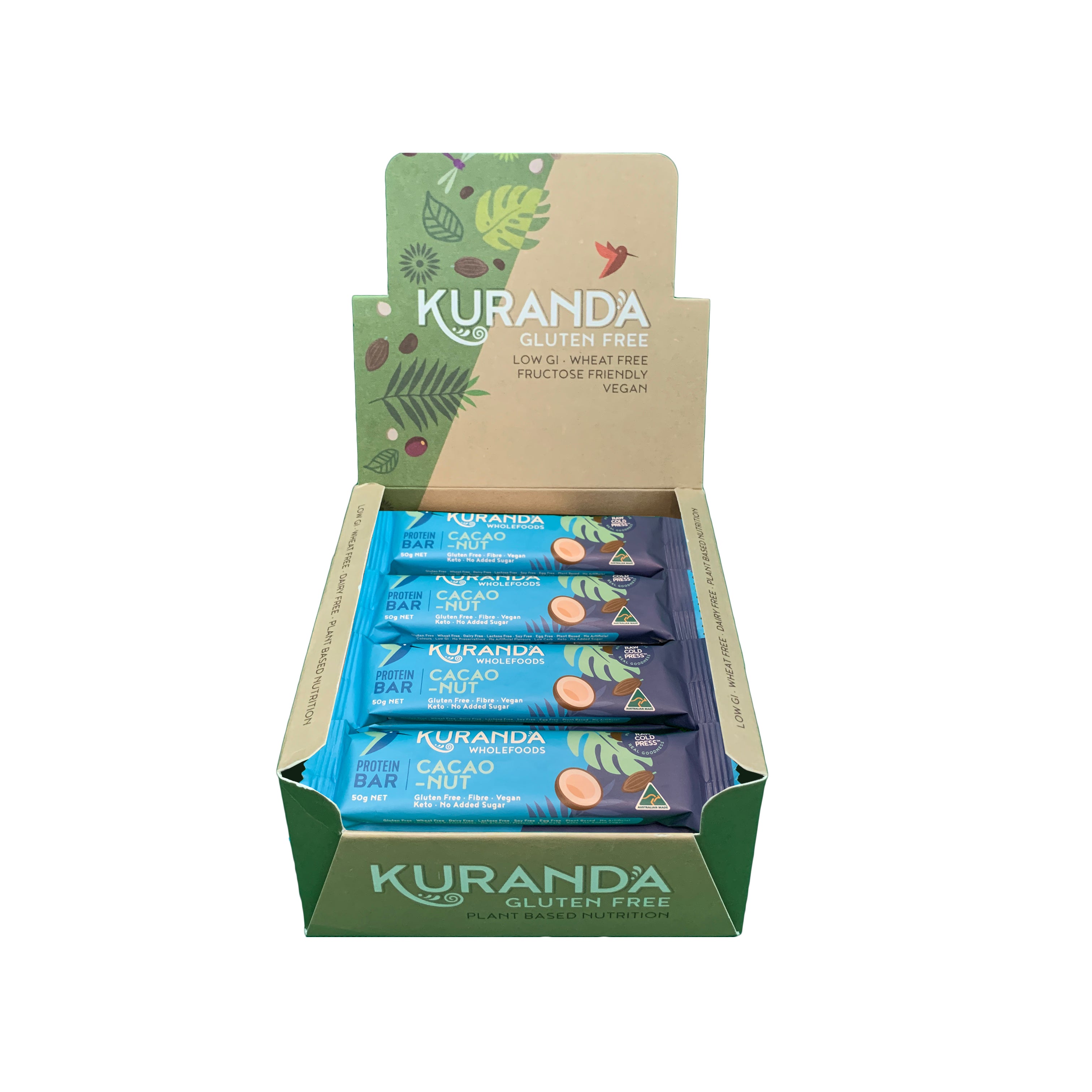 Come and explore a bunch of different protein bars and ealthy snacks that you can buy in bulk at Kuranda Wholefoods! We have all kinds of choices like plant-based ones, ones with less sugar, and ones packed with fiber. These are great for filling up your store with yummy and nutritious options for your customers. Give us a ring at (02) 8883 0884 or send us a message online if you're interested! We'd love to help you out.